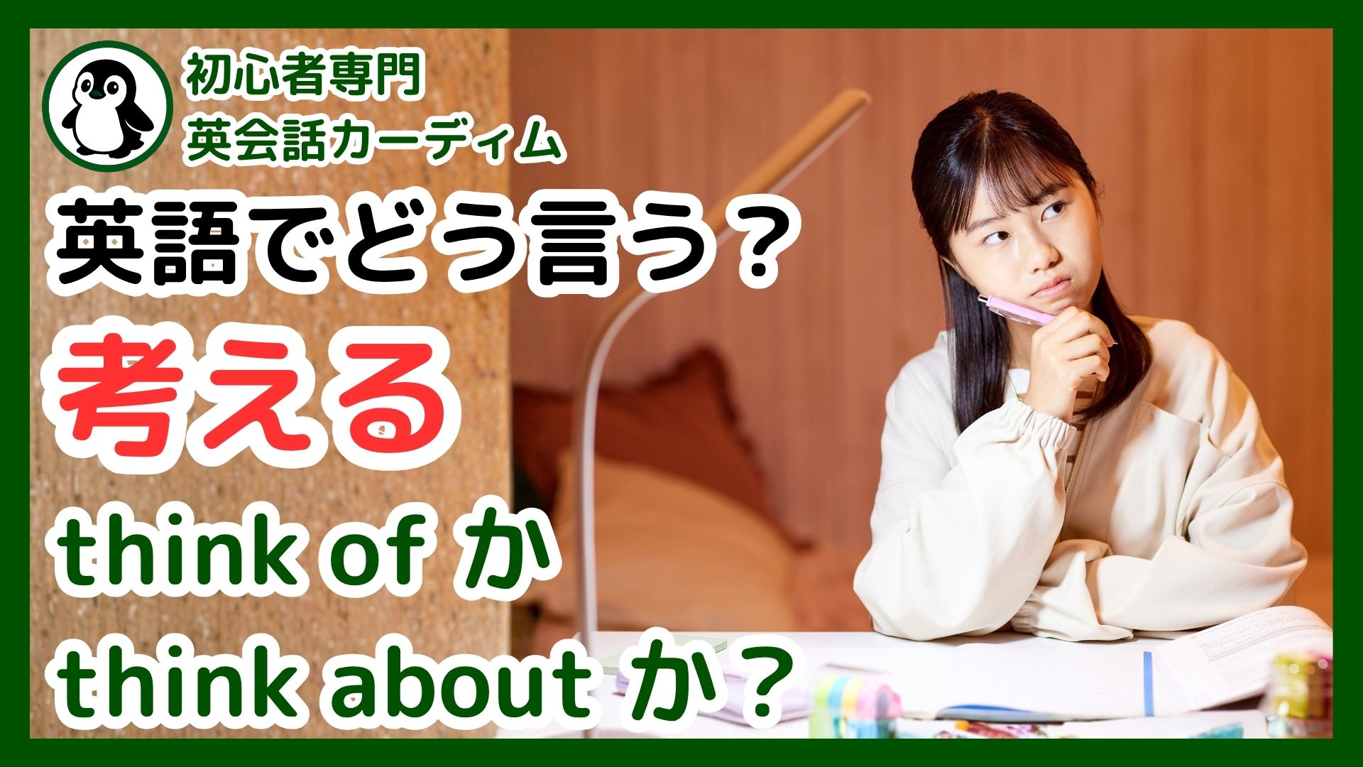 この記事のテーマである「考える」の英語表現については、YouTube動画でも分かりやすく解説しています。